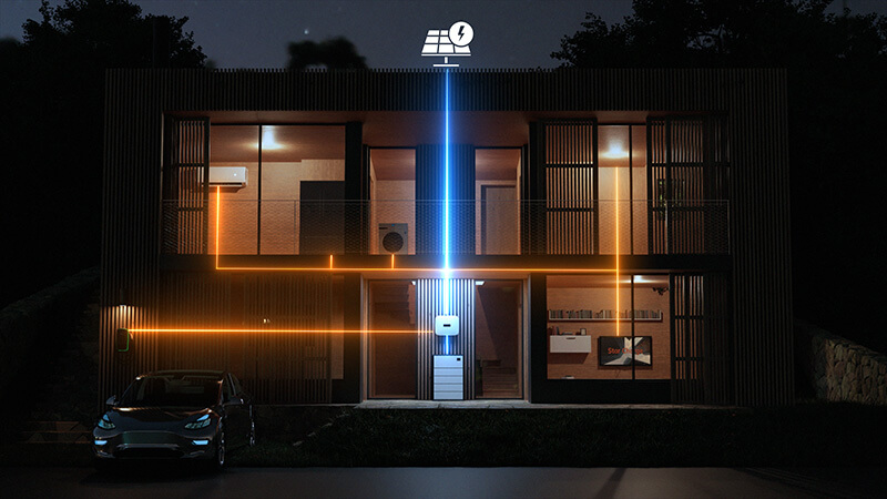 When this mode is activated, the entire system will prioritize supplying power to the entire house. Electricity generated by the photovoltaic panels will be directly delivered to the household appliances via the inverter. Any surplus power will be stored in the battery and made available for use in situations where solar generation is insufficient.
